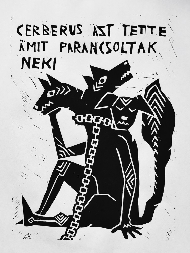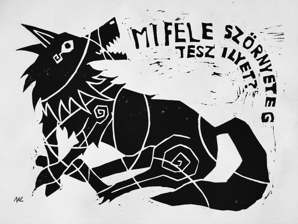 Az illusztrációt tekintve amiatt, mert a kedvenc grafikai technikám a linóleummetszés, amellyel egy súlyosságot tudok kifejezni a tömör formák miatt. Mivel leginkább a foltszerű lebontás jellemzi, én főként olyan témákkal szeretek foglalkozni, amely ezt a hatást váltja ki és adja át.