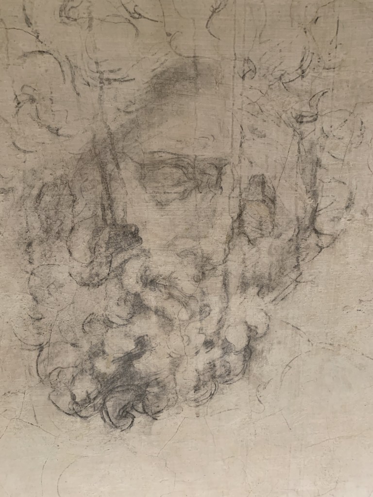 Michelangelot alkotás közben senki sem láthatta, így zavartalanul dolgozhatott. A csupasz falfelületen megjelenő erőteljes vonalak és árnyékok a forma térbeli megjelenítését adják vissza. A falakon található rajzok gondolatainak, terveinek vázlatait tartalmazták. Az egyes testtartások, izmok és vonások szinte életre keltek, miközben a művész folyamatosan kereste és finomította a formákat, amelyek nemcsak a művész alkotói magánéletét tükrözték, hanem azt is, hogy a reneszánsz idején a művészet határvonalai miként tűntek el.