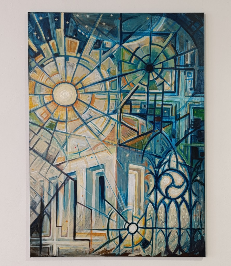 Persze azért is szakrális jellegűek ezek az épületek, mert a templom mindig a hitvilágon keresztül leszűrt valóság esszenciáját mutatja meg. És megpróbál megfogalmazni valamit az ’egyénen túl’-ból. Tanítás, ami inspirál talán Wittgenstein gondolata: „Nyelvem határai, világom határai.” Ebben azt hiszem tisztán kifejeződik az a gondolat, hogy nincs hozzáférésem a valódi világhoz. Az, amit látok és felfogok az csak egy kicsi szelete az nagy egésznek. A beérkező információk alapján én leképzek egy értelmezést a körülöttem lévőről, de az még mindig csak az én leképezésem. Ettől még nem lesz teljes a kép. Csak az én nézőpontom. Ez pedig frusztrál engem. Az, hogy lényemből fakadóan, amit látok az csak a Májá fátyla, az illúzió. Ez a gondolat adta az inspirációt a képeim témáihoz és azok megfogalmazásához.