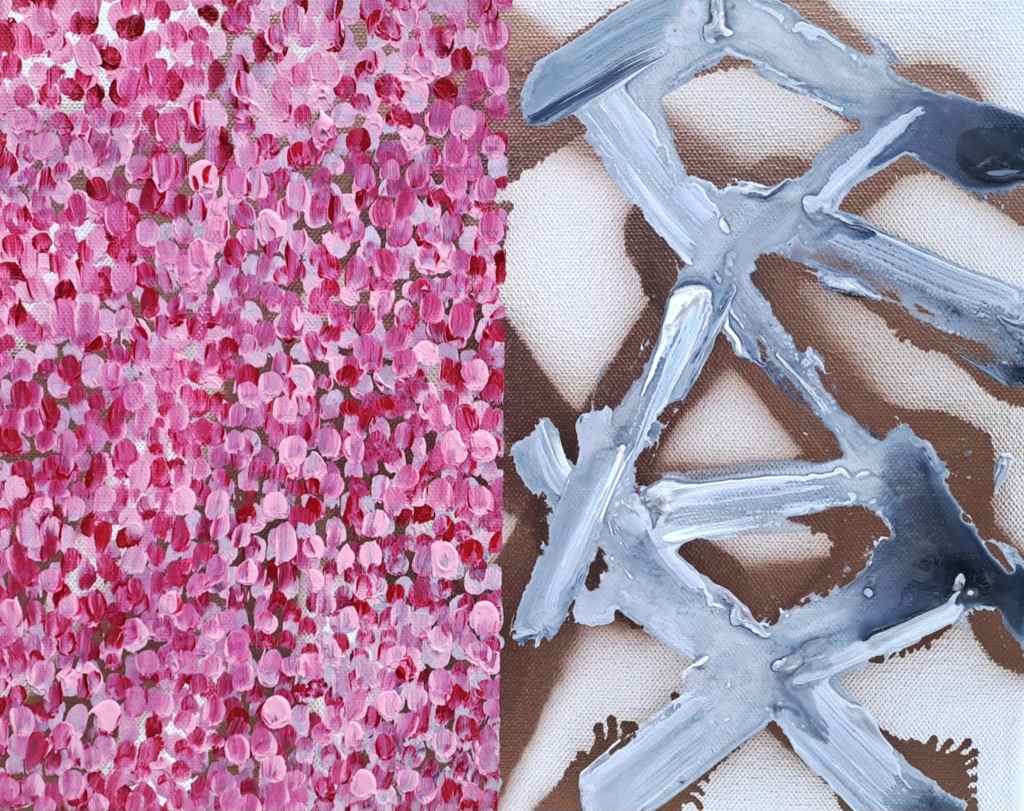 A 20250520 és a 20250528 című alkotások erősen kötődnek ahhoz az elmélethez, amelyet Gianni Asdrubali olasz festőművész is foglalkozik: feltárom a hiány és a tér gondolatát, magának a létezést preferálom. Erősen érezhető ez a kettőség, ahol mindkettő munkámon megjelenik. Az alkotásokat mezőkre osztottam fel, ahol különböző megoldások születtek, természetsen vázlatok nélkül. A 20250520 című képnél megjelenik némi antikizáló jellem, ugyanis rézlakkal alapoztam le a vászon felületét, ahol sokkal fényesebb lett, ezzel szemben a 20250528 című képnél a hagyományos akril fújófesték tulajdonsága jelenik meg.