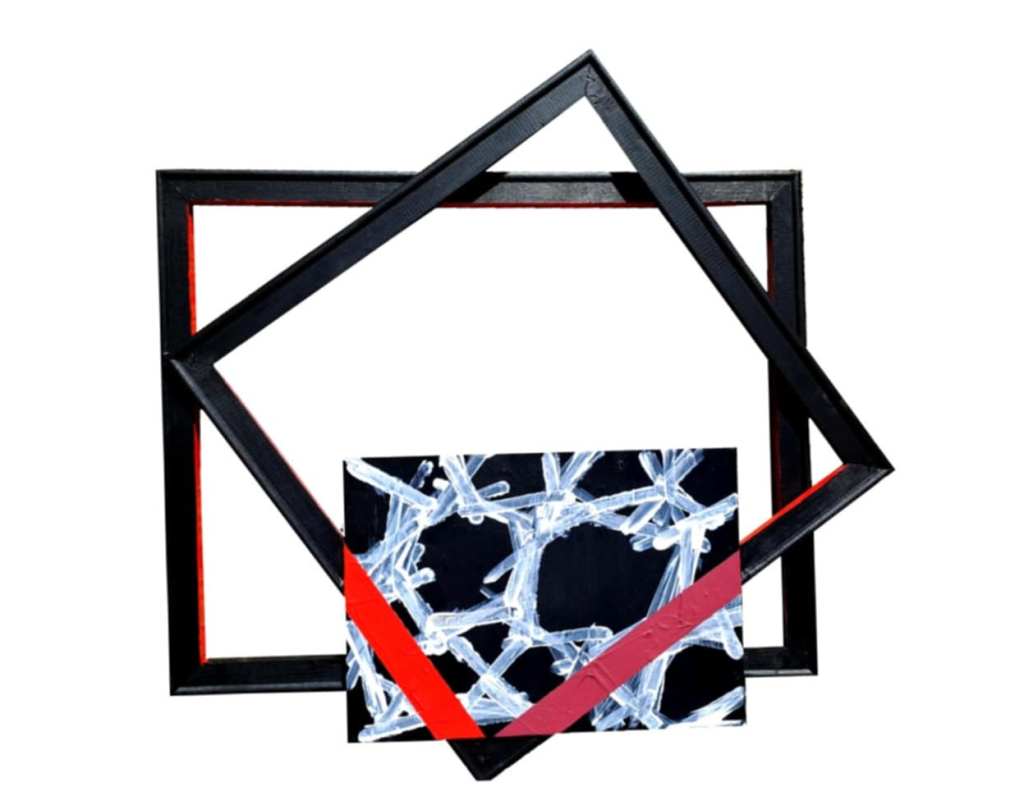 Munkáim tudatosan eltávolodnak a hagyományos médiumoktól: fakeretet alkalmaztam, amelyre kasírozott vásznakat rögzítettem. A szabályos és szabálytalan formák közötti feszültséget kerestem, miközben Gianni Asdrubali festészeti módszere is irányadó volt számomra. A képek akril technikával készültek.
