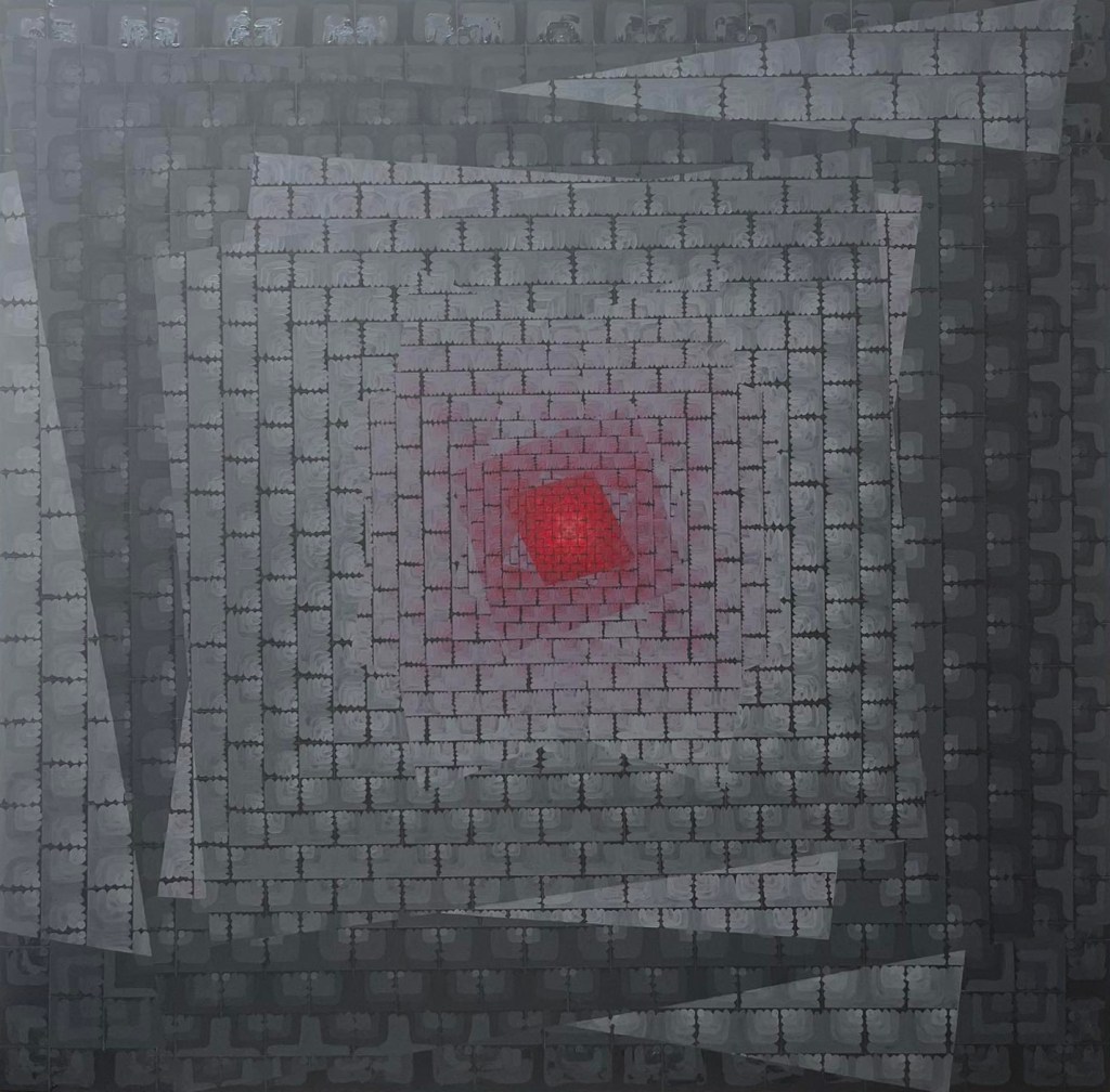 A matematika és a rend alapvető vezérfonalam marad, de nem kizárólagos értelemben. Egyre inkább érdekel, hogyan lehet a szigorú rendszereket finoman „megbillenteni”, miként tud megjelenni bennük a törékenység, az elmozdulás vagy akár az organikus érzet. Nem váltásban gondolkodom, hanem rétegződésben. Elképzelhető, hogy a jövőben lágyabb ritmusok, organikusabb áramlások jelennek meg a munkáimban, de mindig egy jól meghatározott struktúrán belül.