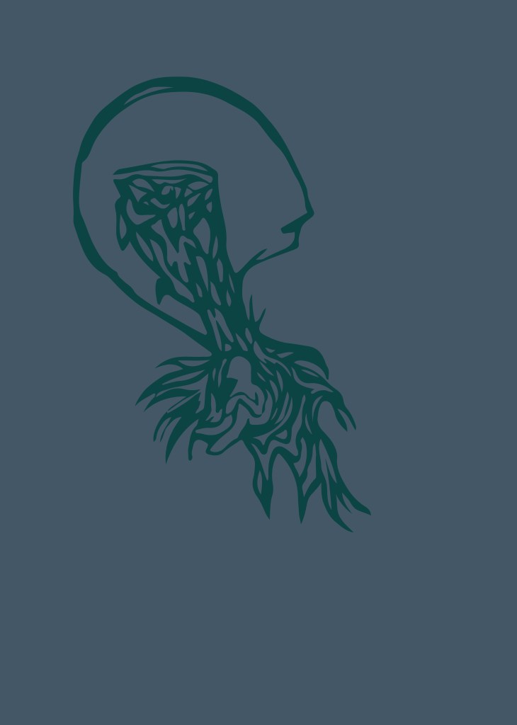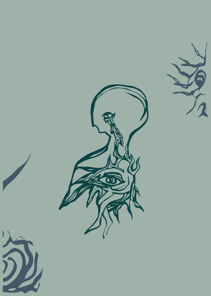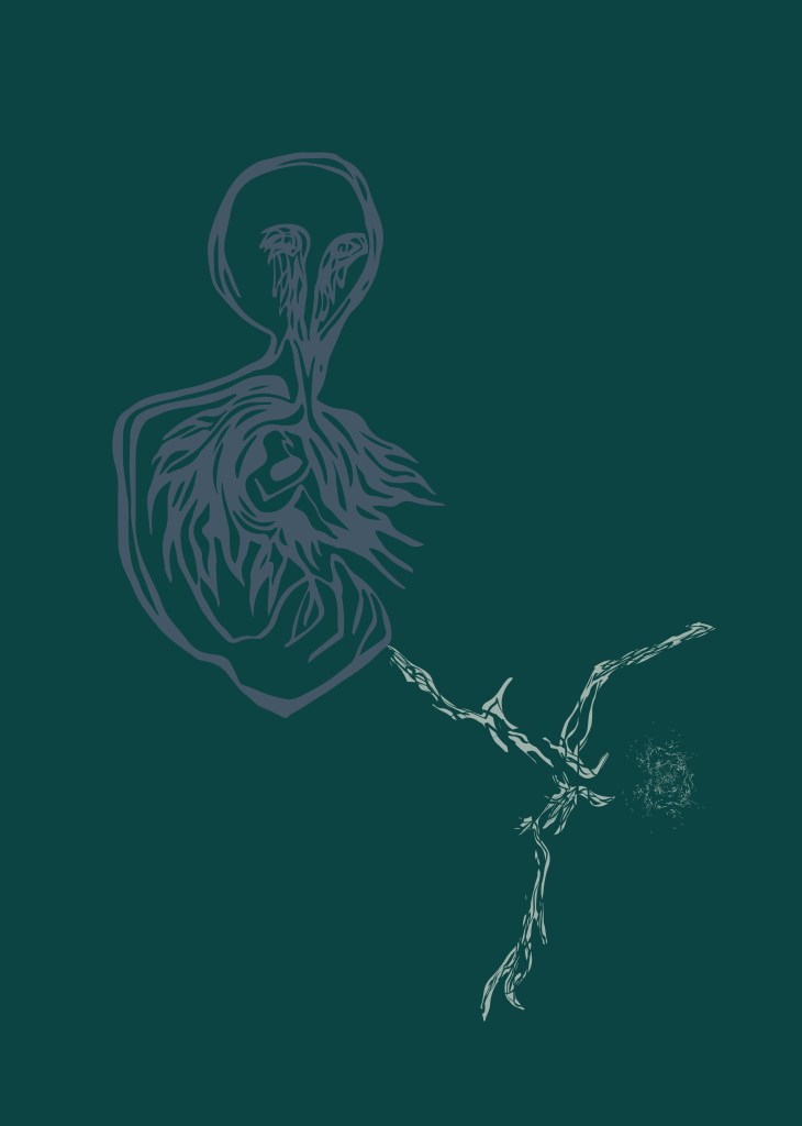 A sorozatot digitálisan, Adobe Illustrator programban készítettem. A kilencrészes sorozatból a negyedik, ötödik és hatodik darab látható, amelyek címe: Ágyazódás. Az illusztrációk központi témája a zsigeri elemek megfogalmazása, annak bemutatása, hogy milyen mélyen gyökereznek bennünk.